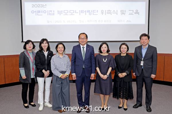 ▲ 사진=제주시강병삼 제주시장은 5월 10일(수) 보육환경 개선을 위해 2023년 어린이집 부모모니터링단으로 선발된 전문가 단원 5명에게 위촉장을 전달했다.