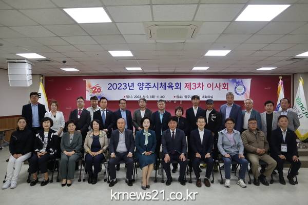 ▲ 양주시 체육회, 제3차 이사회 개최양주시체육회(회장 임재근)는 지난 9일 민선 2기 체육회장 취임 후 제3차 이사회를 강수현 양주시장, 최영대 수석부회장 등이 참석한 가운데 양주시청 대회의실에서 개최했다.
