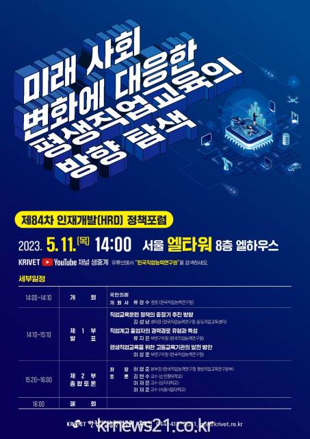 ▲ 사진=한국직업능력연구원국무총리 산하 정부출연연구기관인 한국직업능력연구원(원장 류장수)이 서울 엘타워 8층 엘하우스에서 ‘미래 사회 변화에 대응한 평생직업교육의 방향 탐색’을 대주제로 5월 11일(목) 오후 2시부터 포럼을 개최한다.