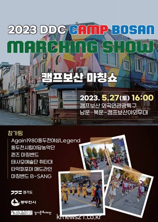‘캠프보산 마칭쇼’는 지난해 처음 선보인 지역 문화 행사로 ‘AGAIN 1980 동두천 여상고적대’와 ‘시립이담농악단’, ‘퀸즈 마칭밴드’ 등 전문 예술단체들의 퍼레이드 공연이다.