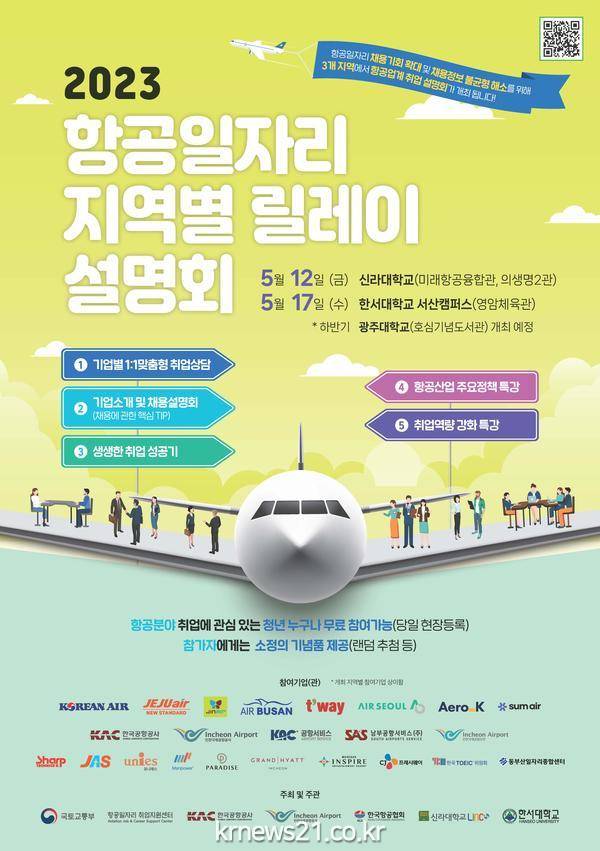 항공일자리 지역별 릴레이 설명회의 자세한 내용은 항공일자리 포털(www.air-works.kr, 1577-9731)에서 확인 가능하다.