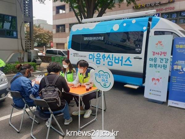 서울 강서구(구청장 김태우)는 재난 위기 상황 등 스트레스 요인을 찾아 심리상담을 진행하는 찾아가는 상담소 ‘마음안심버스’를 운영한다고 밝혔다.
