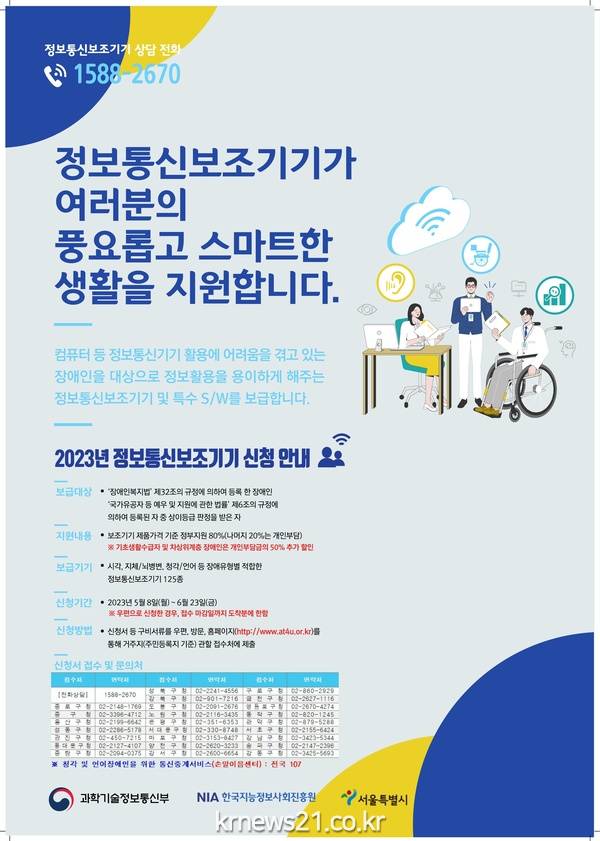 희망자는 다음달 23일까지 신청서, 활용계획서 등을 작성해 정보통신보조기기 홈페이지(https://at4u.or.kr) 또는 구청 정보통신과나 동 주민센터를 방문해 신청할 수 있다.