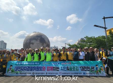 ▲ 사진=대전광역시대전자치경찰위원회는 20일 대전천변 일대에서 중부경찰서와 중구청 직원 50여 명, 1365자원봉사자 등 지역주민 50여 명과 함께‘치안&플로깅’캠페인 활동을 전개했다.