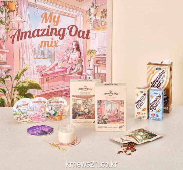 3월 어메이징 오트는 일러스트 작가·뮤지션과 협업해 비건 오트 음료 어메이징 오트의 다채로운 활용법을 제안하는 ‘My Amazing Oat mix’ 캠페인 광고 영상을 공개했다. 캠페인 광고 영상은 ‘새롭게 즐기는 비건 오트 음료’를 콘셉트로 부드럽고 깔끔한 어메이징 오트를 넣어 만든 다섯 가지 스페셜 레시피를 담았다. 특히 일러스트 작가 토티는 일상 속 어메이징 오트를 즐기는 모습을 일러스트화해 감각적인 광고 영상으로 구현했다. 해당 영상은 약 450만회의 높은 조회수를 기록하며 MZ세대의 눈과 귀를 사로잡았다. 어메이징 오트의 레시피를 감성적으로 담아낸 작가 토티의 일러스트는 디지털 굿즈로도 선보였다. 광고 영상 속 어메이징 오트를 즐기는 모습을 그린 일러스트를 활용한 배경화면 등이다. 디지털 굿즈는 PC, 모바일, 스마트워치 등 다양한 디지털 기기에 적용 가능하며, ‘My Amazing Oat mix’의 따뜻한 감성을 함께 만나볼 수 있다. 디지털 굿즈는 어메이징 오트 홈페이지에서 무료로 다운로드 받을 수 있다.