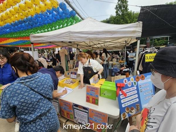 부천시다문화가족지원센터는 ‘한국전통 간식 약과’ 나눔과 최근 ㈜고요컴퍼니에서 후원받은 워터젤리등을 축제에 참여한 관람객들에게 제공하며 한국의 전통 문화와 나눔의 기쁨을 함께하였고, 저소득가정 긴급사례비 마련을 위한 바자회 진행도 함께했다.