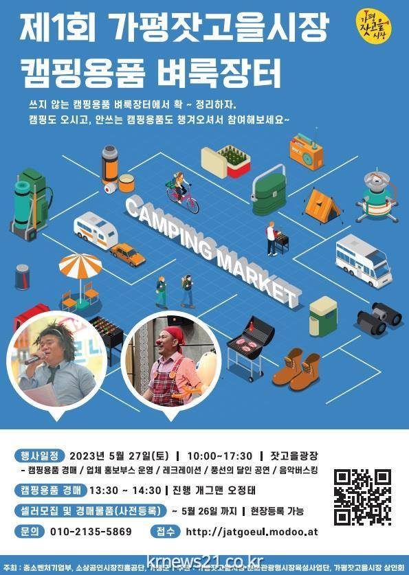 ▲ 가평잣고을시장 캠핑용품 벼룩장터 연다가평잣고을시장에서 오는 27일 ‘제1회 캠핑용품 벼룩장터’가 열려 관심을 모으고 있다.