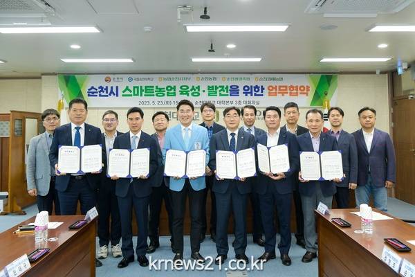 순천시(시장 노관규)는 지난 23일 순천대학교, 농협중앙회 순천시지부, 순천농협, 순천광양축협, 순천원예농협과 함께 민‧관‧학 협력체계 구축을 위한 업무협약을 체결했다.