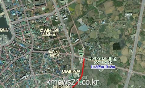 이 사업은 한림주거지역 경계(소로2-34) 도로개설사업으로서 총사업비 23억 원(보상비 13억 원, 공사비 10억 원)을 투입해 연장 325m, 폭 8m의 왕복 2차로를 조성하는 사업으로 내년 개통을 목표로 하고 있다.