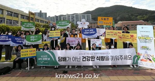 이번 캠페인에서는 학생들과 함께 금연·건강생활실천 현수막과 피켓을 들고 홍보활동을 진행했으며, 금연 분위기 확산 및 아침밥 먹기 홍보 등을 통해 학생들의 건강한 성장을 지원했다.
