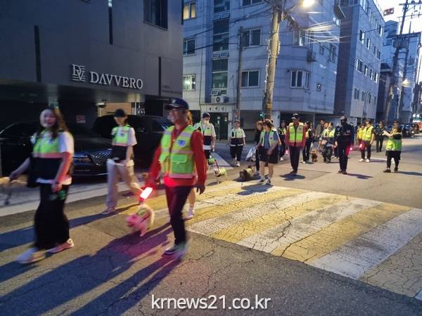 이날 합동순찰에는 반려견순찰대, 망원1동 자율방범대, 경찰, 공무원 및 지역 구의원(안미자, 강동오) 등 30명이 함께했다.