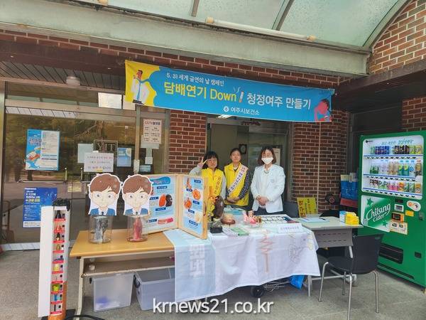 ▲ 여주시, 제36회 세계 금연의 날 맞이 금연 캠페인 실시 여주시보건소(소장 최영성)는 5월 31일 제36회 세계 금연의 날을 맞이하여 5월 한 달간 여주대학교 외 5개소에서 금연 캠페인을 실시하였다.