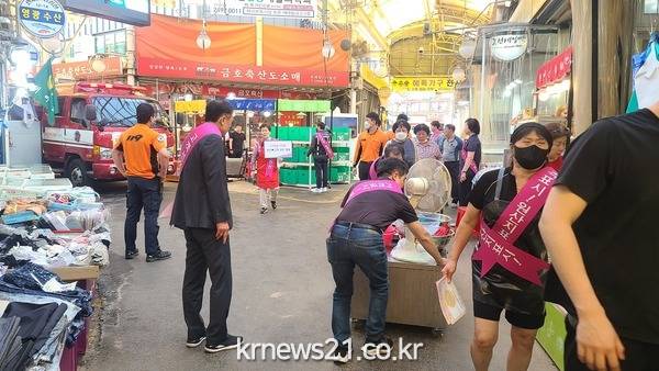 또 상인을 대상으로 ‘전통시장 환경개선 동참 서명운동’을 전개하고, 소방차 길터주기 훈련을 함께 실시하며 안전의식을 공유했다.