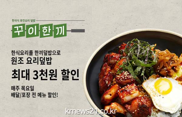 ▲ 사진=DRP푸드‘한식요리를 한끼덮밥으로’를 모토로 한 DRP푸드의 원조 한식퓨전요리 덮밥 브랜드 ‘꾸이한끼’가 배달의민족 브랜드관 할인 이벤트를 진행한다고 1일 밝혔다.
