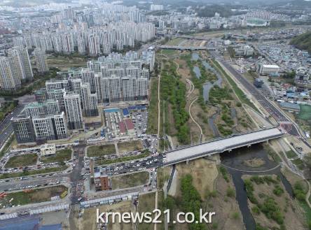 ▲ 사진=대전광역시갑천으로 단절된 서구 월평동과 유성구 원신흥동을 연결하는 도솔대교 및 연결도로가 31일 오후 6시 개통했다.