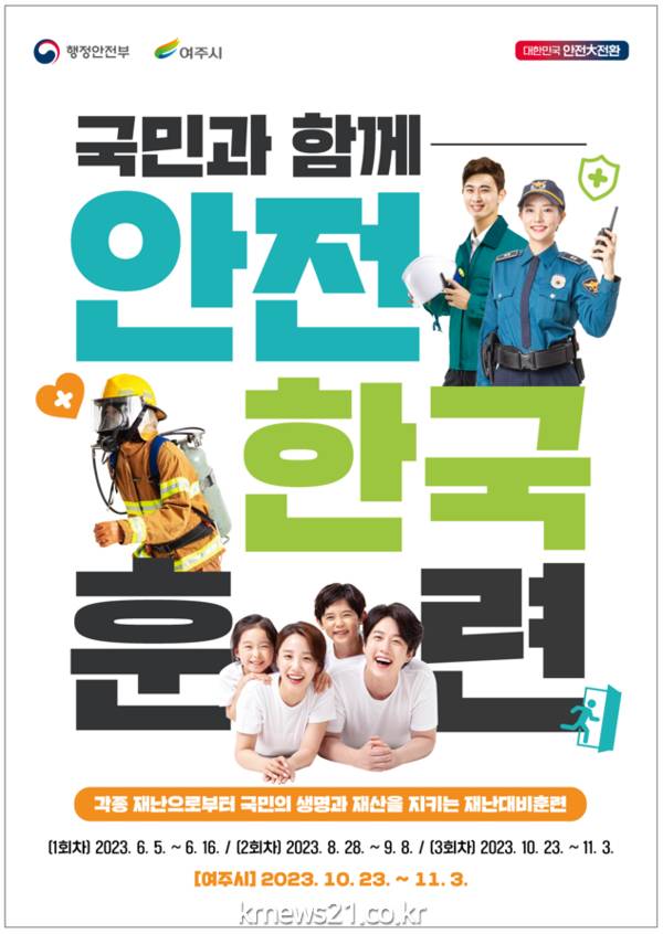 여주시는 2023년도 안전한국훈련을 3차 훈련기간에 실시하며, 관내 공공기관과 산하기관, 안전협력단체, 종교시설, 복지시설 등 23개 기관‧시설이 참여한다. 훈련기간에는 주요 시설에 대한 안전점검과 화재대피훈련, 심폐소생술 교육 등 안전체험교육도 이루어진다.