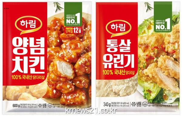 하림의 ‘양념치킨’과 ‘통살 유린기’는 100% 국내산 닭다리살을 사용했으며 특제 양념 소스가 들어있어 간편한 조리로 외식이나 배달 음식 부럽지 않은 맛을 선사한다.