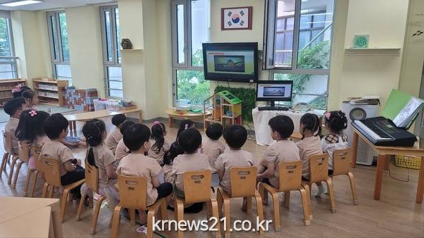 ▲ 사진=지난 2일 경희유치원에서 진행된 ‘찾아가는 기후변화교실’ 교육 현장탄소중립도시 동대문구(구청장 이필형)가 6월부터 10월까지 5개월 간 관내 유치원, 초·중학교 학생을 대상으로 ‘찾아가는 기후변화교실’을 운영한다.