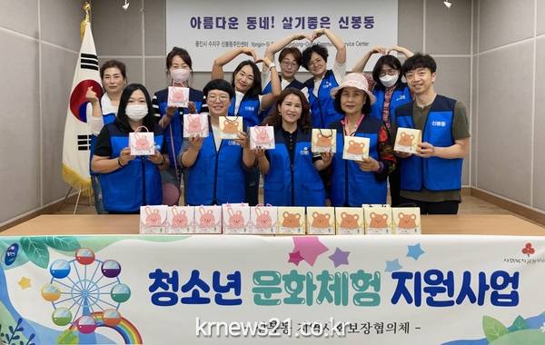▲ 사진=저소득 청소년에게 에버랜드 이용권을 지원한 신봉동 지역사회보장협의체 위원들이 기념촬영을 하고 있다용인특례시 수지구 신봉동은 지역사회보장협의체(위원장 김경순)가 저소득 가정 청소년 20명에 게 에버랜드에서 사용할 수 있는 이용권(10만원권)을 지원했다고 12일 밝혔다.