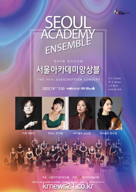 ▲ 사진=한다우리 예술기획한다우리 예술기획은 국내 최초의 여성실내악단 서울아카데미앙상블이 7월 8일(토) 오후 2시 예술의전당 IBK챔버홀에서 ‘제94회 정기연주회’를 갖는다고 밝혔다.