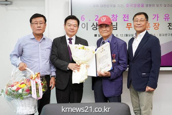 12일 오후 2시 국방부장관을 대신해 이필형 동대문구청장이 이상민 참전용사(90세)에게 화랑무공훈장을 수여하고 국가를 위한 숭고한 희생에 대한 감사를 전했다.