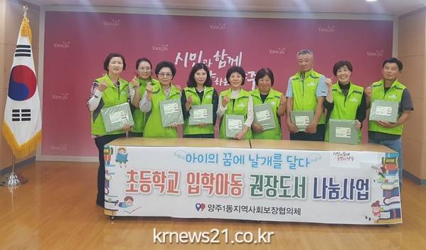 ▲ 양주시 양주1동 지역사회보장협의체, ‘권장도서 나눔사업’ 펼쳐양주시 양주1동 지역사회보장협의체(공동위원장 강인옥)는 지난 14일 2023년 마을복지 사업의 하나로‘권장도서 나눔사업’을 추진했다.