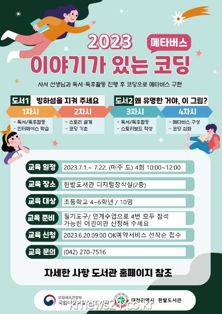▲ 사진=대전광역시한밭도서관은 오는 7월 1일부터 22일까지 매주 토요일 총 4회에 걸쳐 ‘이야기가 있는 코딩’프로그램을 운영한다.