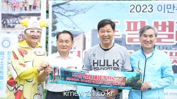 ▲ 사진=주관/주최 단체장과 함께. 좌측부터 김종석 개그맨, 이갑용 회장, 이만수 명예회장, 손기서 신서중학교 교장12일(월) 05시에 경기도 양평에서 김종석 개그맨은 국내 최초로 2023 이만수배 발달장애인 티볼야구대회에 재능 기부로 행사 진행을 위해 행사 계획 및 시나리오 점검 후 서울 양천구에 있는 신서중학교를 향해 떠났다.