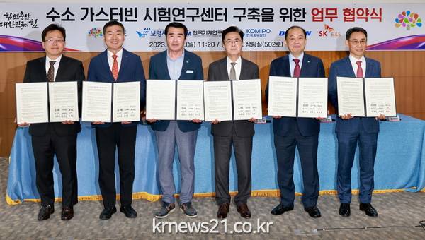 보령시는 19일 충남도청에서 충청남도, 한국중부발전, 두산에너빌리티, SK E&S, 한국기계연구원과 수소 가스터빈 시험평가센터 유치를 위한 업무 협약을 체결했다.