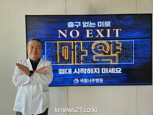 ▲   사진=국립나주병원윤보현 국립나주병원장은 전 국민에게 마약의 위험성을 알리고 마약 범죄를 예방하기 위한 ‘NO EXIT 릴레이 캠페인’에 동참했다.