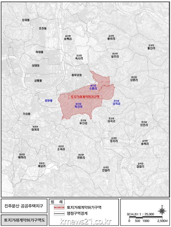 ▲ 사진=진주시진주시는 ‘진주문산 공공주택지구’및 인근 지역에 대해 21일부터 2026년 6월 20일까지 3년간 토지거래허가구역으로 지정 공고한다고 밝혔다.