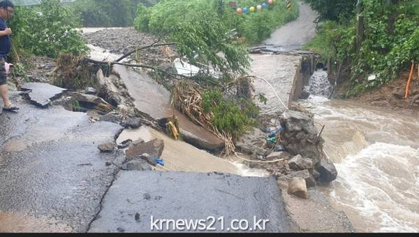 ▲ 사진=지난해 폭우로 인해 수해를 입었던 수지구 동천동 지역의 모습용인특례시 수지구가 지난해 폭우로 인해 파손된 사유지 도로 보수공사를 진행하기 위해 토지 소유주를 대상으로 토지사용권(배타적 사용·수익권 포기) 취득을 협의 중이라고 21일 밝혔다.