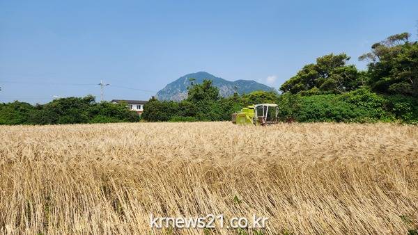 ▲ 서귀포시, 새로운 소득작물‘호라산 밀’첫 수확지난 15일부터 서귀포시의 새로운 소득작물 ‘호라산 밀’ 수확이 한창이다.