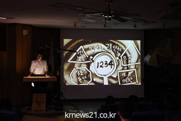 ‘찾아가는 스쿨존 어린이 안전교육’은 기존 대면 강의 형식이 아닌 체험형 샌드아트 공연 교육이다. 빛과 모래를 이용한 샌드아트 공연은 보행 중 스마트폰 사용금지, 교통신호 준수 등의 안전사고 예방 등의 교육 내용으로 구성됐다.
