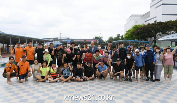 ▲ 동두천시, 시민회관 내 실외수영장 장애인 수상안전교육 실시동두천시 시설사업소(소장 오영준)에서는 6월 22일 목요일에 시민회관 실외수영장에서 관내 장애인들을 초청해 수상안전교육(생존수영)을 실시했다.