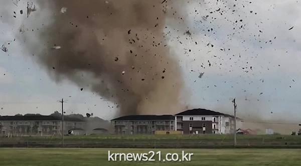 목격자들이 소셜미디어에 올린 동영상들을 보면 거대한 토네이도가 건물 지붕과 시설물 등을 집어 삼킨 후 집이 부서지고 유리창이 깨지는 등의 처참한 모습이 담겼다.