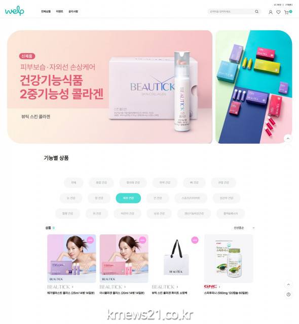 웰프에서는 동원F&B의 모든 건강기능식품을 구매할 수 있다. 프리미엄 건강기능식품 브랜드 ‘올리닉’을 비롯해 홍삼 전문브랜드 ‘천지인’, 종합 건강기능식품 브랜드 ‘GNC’, 이너뷰티 전문브랜드 ‘뷰틱’ 등 4개 브랜드의 180여 가지 제품이 마련돼 있다.