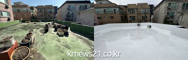 ▲ 사진=용인특례시의 녹색건축물 조성 지원사업으로 한 노후주택에 쿨루프가 설치된 모습(공사 전후)용인특례시(시장 이상일)는 창호와 단열재 등 에너지 절감 설비를 교체하는 가구에 최대 1000만원을 지원하는 ‘녹색건축물 조성 지원사업’의 추가 대상자를 모집한다고 3일 밝혔다.