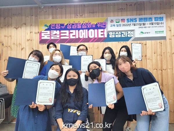 ▲ 사진=지난해 은평구 로컬크리에이터 양성과정 수료자들이 기념 사진을 찍고 있다.서울 은평구(구청장 김미경)는 지역경제에 활기를 불어넣고자 지역 가게와 소상공인을 홍보하는 ‘로컬 크리에이터 양성과정’ 참여자를 오는 21일까지 모집한다.