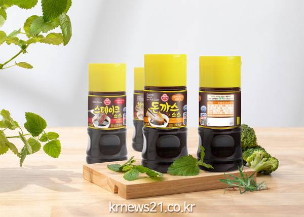 이번 리뉴얼된 오뚜기 육류소스(290g)는 ‘돈까스소스’, ‘참깨돈까스소스’, ‘스테이크소스’ 등 3종이며, SK케미칼의 화학적 재활용 페트인 ‘스카이펫(SKYPET) CR’을 100% 사용했다. 물리적 재활용보다 한 단계 발전한 친환경 용기로 연간 플라스틱 사용량을 약 16톤 감축할 수 있으며, 기존 수준의 안전성을 유지하면서도 생산 공정에서 일반 플라스틱 대비 탄소 배출량을 40%까지 저감할 수 있다.