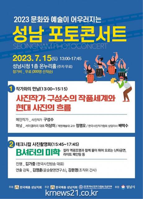 ▲ 사진=한국예총성남지회사단법인 한국예총 성남지회(지회장 송위혁)가 주최하고 사단법인 한국사진작가협회 성남지부(지부장 한순규)가 주관하는 ‘2023 성남 포토콘서트’가 7월 15일(토) 성남시청 온누리 대강당에서 지난해에 이어 2번째로 개최된다.