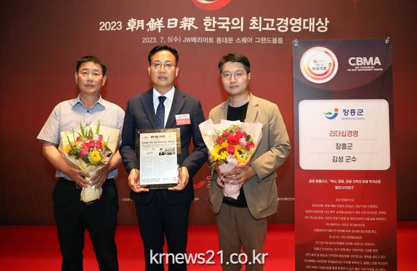 ▲ 김성 장흥군수, ‘2023 한국의 최고 경영대상’ 수상김성 장흥군수가 ‘2023 한국의 최고 경영대상’ 리더십 부문 대상을 수상했다.