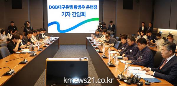 ▲ 사진=DGB대구은행DGB대구은행(은행장 황병우)은 6일 오전 제1본점에서 기자간담회를 열고 시중은행 전환 추진을 결정하게 된 경과와 시중은행으로서의 지향점, 기대효과 등을 밝혔다.