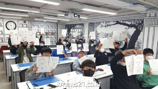 ▲ 사진=새롭게 바뀐 미디어교육실에서 진행한 웹툰 교실에서 참여한 학생들 모습서울 은평구(구청장 김미경)는 구립구산동도서관마을 미디어교육실이 만화적 상상력이 더해진 강의실로 탈바꿈했다고 밝혔다.
