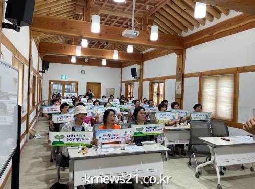 ▲ 사진=대전광역시대전광역시농업기술센터는 6일 옥천전통문화체험관을 빌려 한국생활개선대전광역시연합회(회장 김정순) 대의원 50여 명이 대상으로 “여성농업인 탄소중립 실천 GO!GO!GO! 대회”를 개최했다.