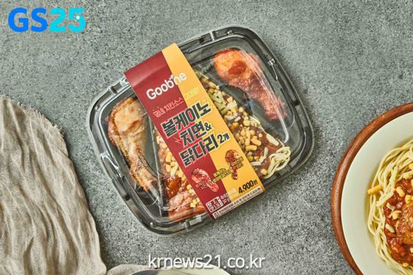 ▲  사진=GS리테일GS25가 치킨플레이션 시대에 고객의 합리적인 쇼핑 지원을 위해 닭다리 2개와 파스타를 한 번에 즐길 수 있는 ‘굽네 볼케이노치면&닭다리 2개’ 상품을 출시한다.