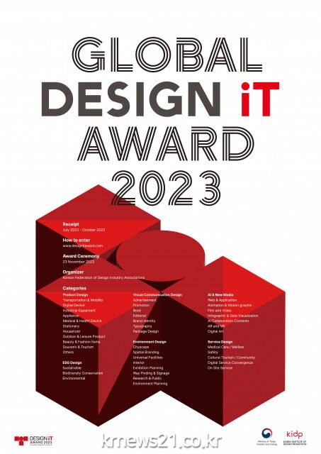 전 세계의 ‘잇(it-특별한)’한 작품을 만날 수 있는 ‘제12회 글로벌 디자인 잇어워드 2023’의 작품 접수는 공식 웹사이트를 통해 7월 10일부터 10월 10일까지 받으며, 특별 사전 접수 기간인 8월 10일까지는 응모 접수비 무료 혜택을 제공한다.