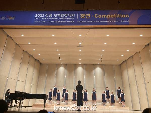 ▲ 사진=4일 강릉아트센터에서 동대문구립소년소녀합창단이 경연에 임하고 있다동대문구(구청장 이필형)는 동대문구립소년소녀합창단이 4일 ‘2023 강릉세계합창대회’ 오픈 경연에 참가하여 은메달을 수상했다고 밝혔다.