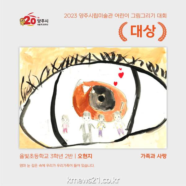 이번 전시는 지난 5월 20일 개최한 ‘시 승격 20주년 기념 2023 어린이 그림그리기 대회’에서 수상한 42점으로 오는 18일부터 8월 6일까지 양주시립장욱진미술관 1층 로비에서 진행한다.