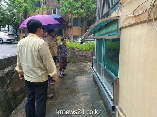 ▲ 동두천시, 반지하 가구 침수 방지 시설 설치 현장 점검 나서동두천시(시장 박형덕)는 지난 14일 집중 호우 시 침수 우려가 있어 침수방지 시설을 설치한 현장을 점검했다.